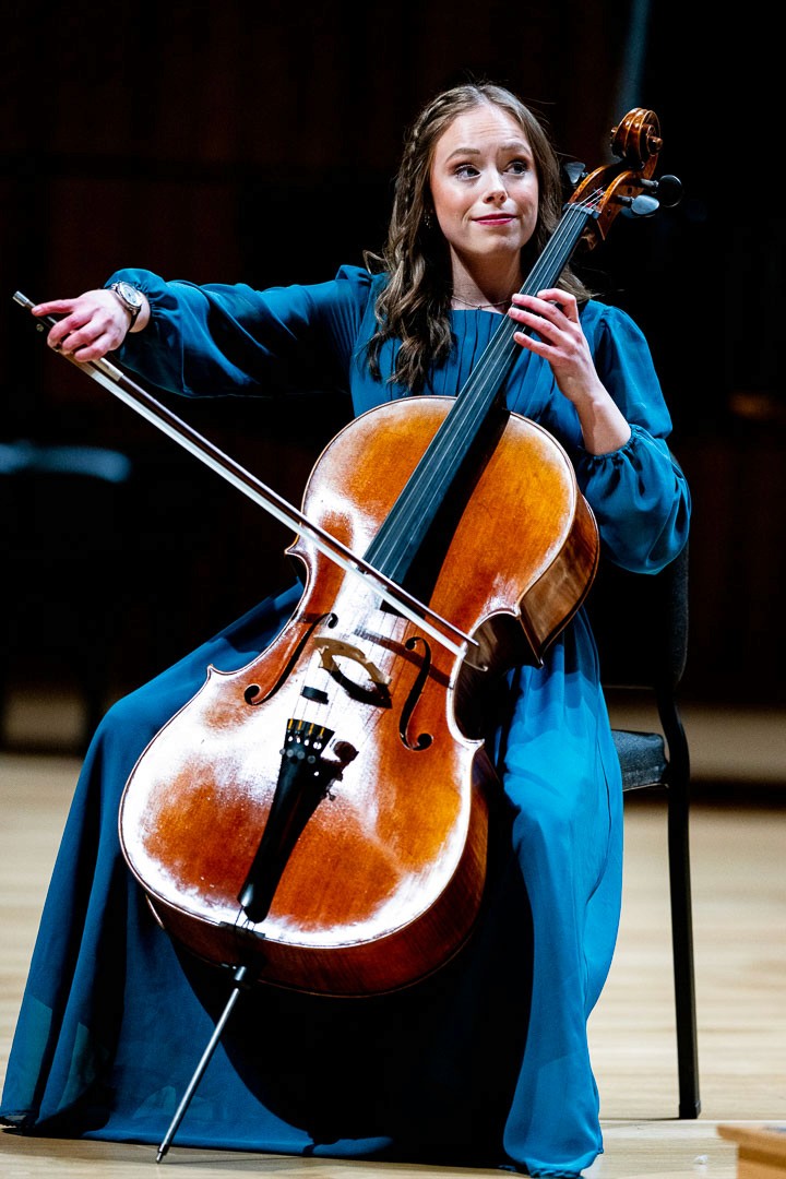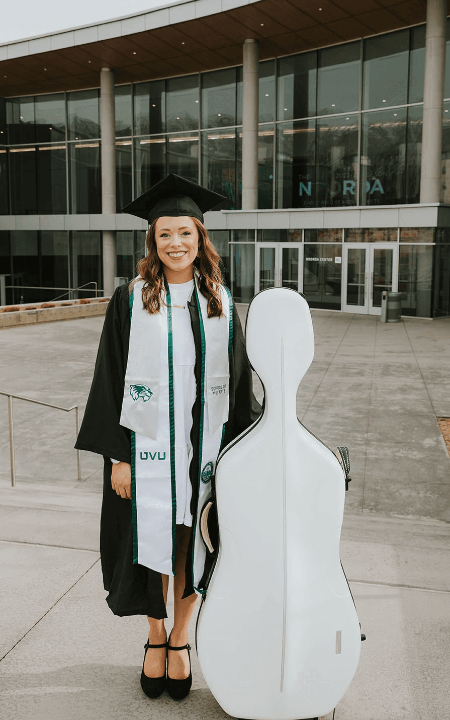 As a performer, Kaitlin maintains an active and diverse career across solo, orchestral, and chamber settings. She has appeared in concert halls and venues internationally, including her solo debut in July 2024 in Vidin, Bulgaria, where she performed Schumann’s Cello Concerto in A minor with the Sinfonietta Vidin. In 2021, after winning Utah Valley University’s Student Solo Competition, she performed Saint-Saëns’ Cello Concerto No. 1 with the UVU Symphony Orchestra. She was also featured as a soloist in the West Coast premiere of Charles Mingus’s Half-Mast Inhibition with the University of Utah Wind Symphony in January 2023.